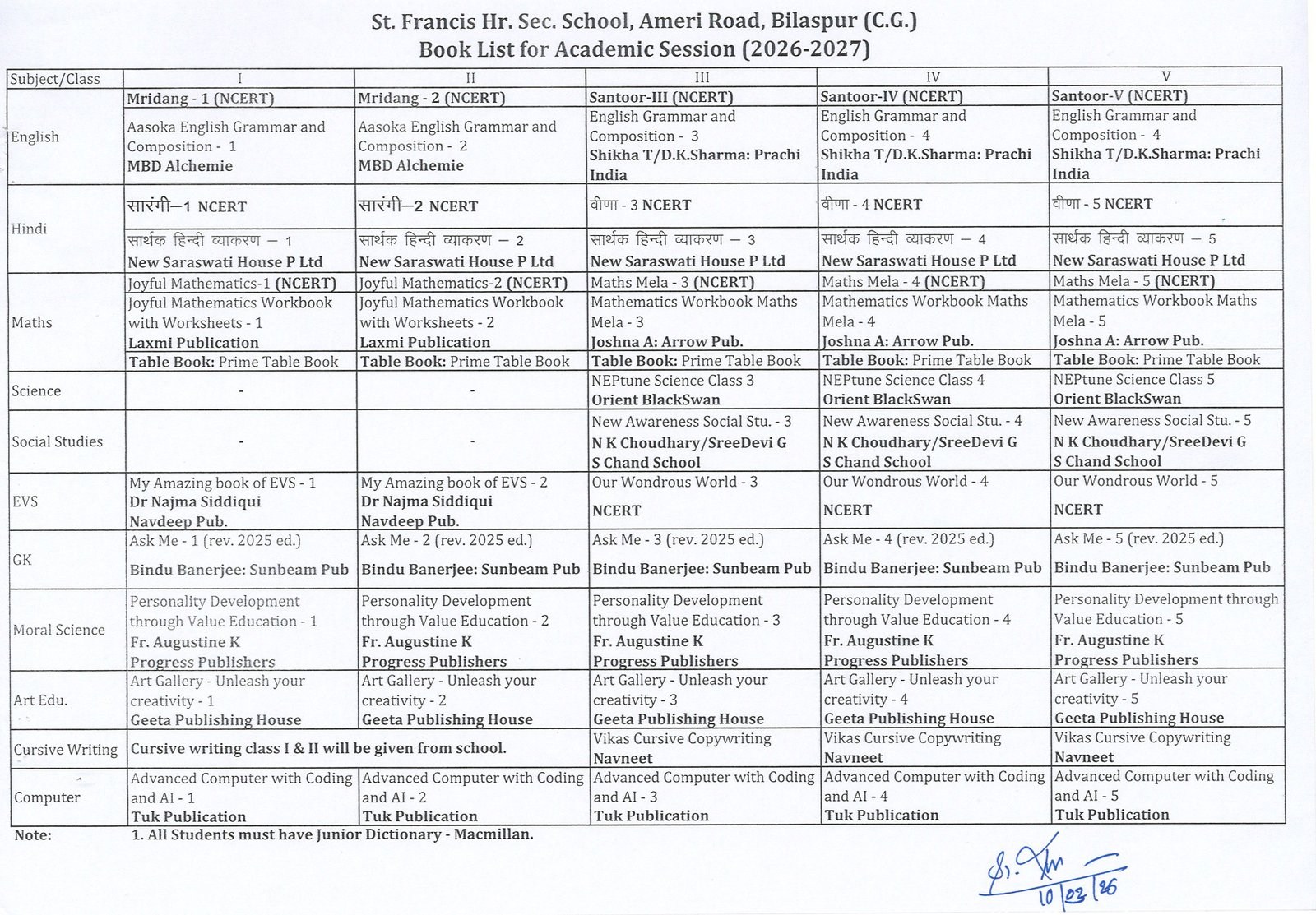 St. Francis Hr. Sec. School, Ameri Road, Bilaspur (C.G.) is a Catholic Minority Coeducational Institution with a tradition of loving and respecting relations. The school is affiliated to the Central Board of Secondary Education, New Delhi.