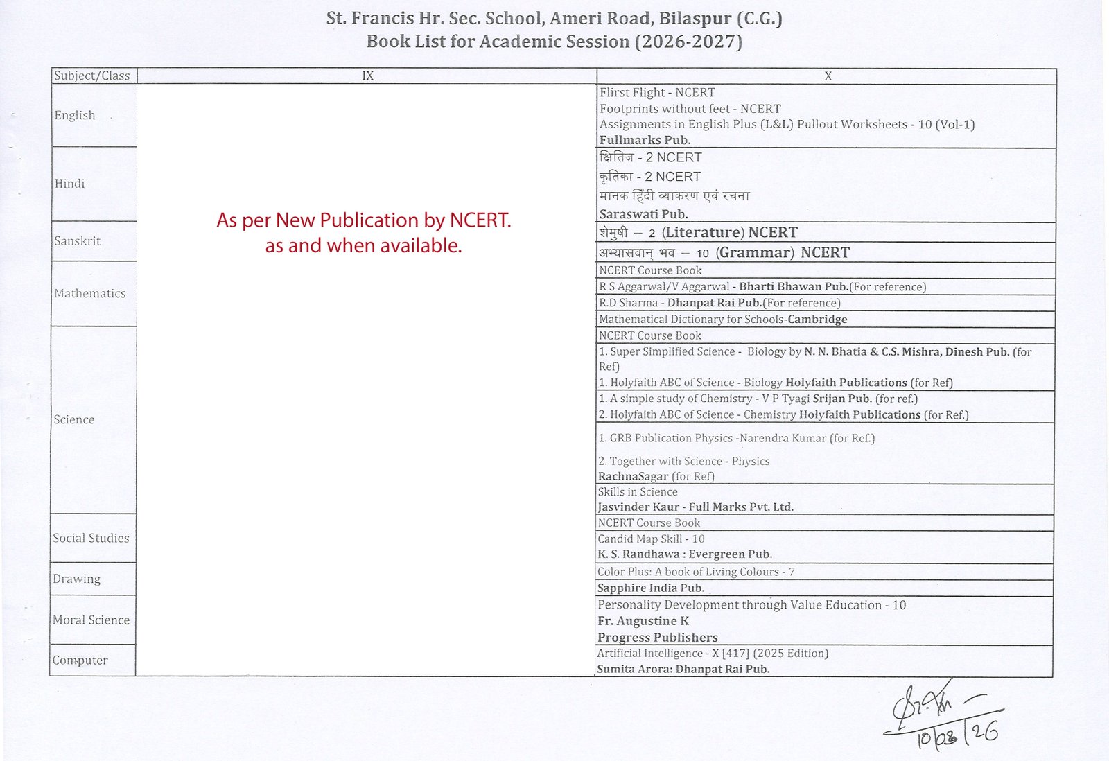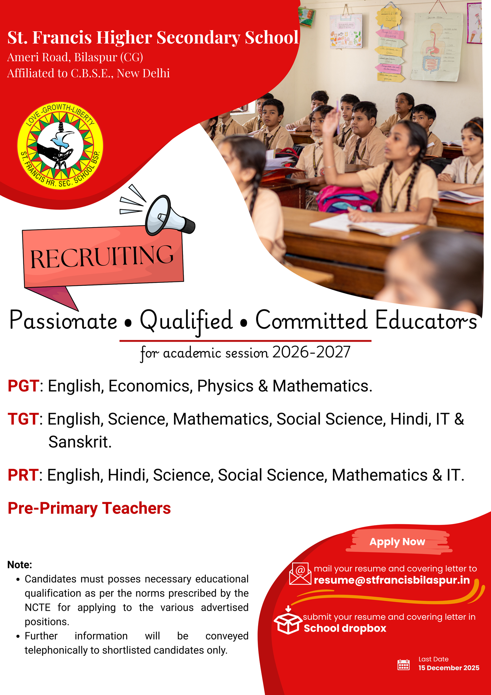 St. Francis Hr. Sec. School, Ameri Road, Bilaspur (C.G.) is a Catholic Minority Coeducational Institution with a tradition of loving and respecting relations. The school is affiliated to the Central Board of Secondary Education, New Delhi.